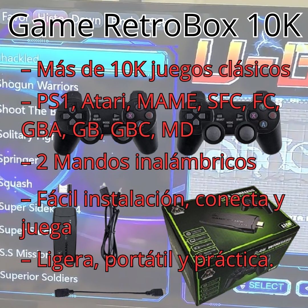 Esta consola retro trae de vuelta esos momentos… pero mejorados. Con más de 10,000 juegos clásicos, salida 4K, y 2 mandos inalámbricos, podrás revivir todos esos títulos que marcaron tu infancia, sin complicaciones, sin instalaciones, sin gastar una fortuna. Solo conectar, elegir y jugar.